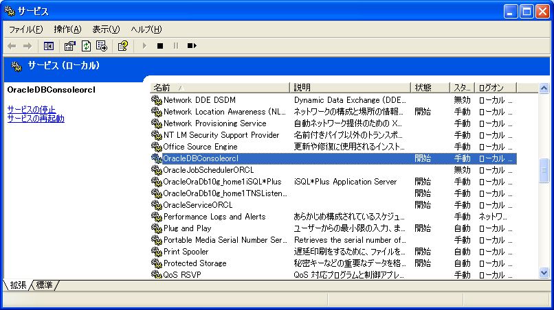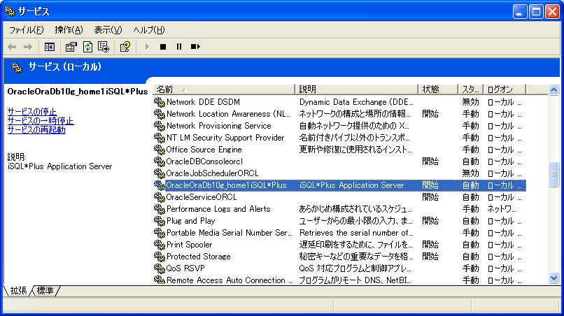 iSQL*Plusを利用するには、Oracleがインストールされているサーバ上で、iSQL*Plusのサービスが起動している必要があるが、データベース作成直後はサービスに登録されていない。