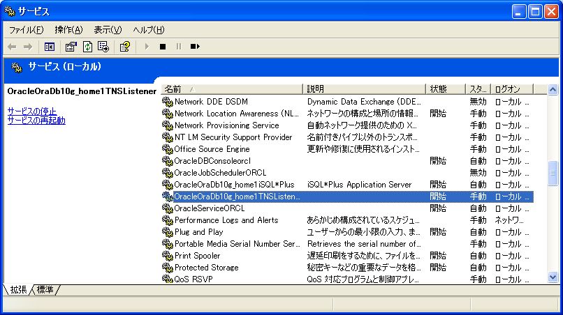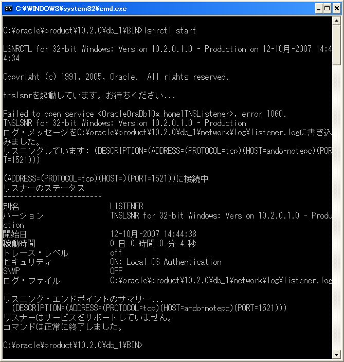 リスナーを起動するには、コマンドプロンプトで次のように入力する。C:\> lsnrctl start