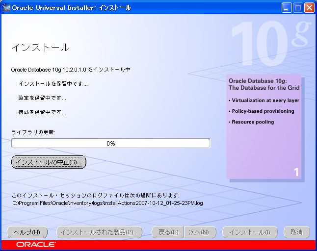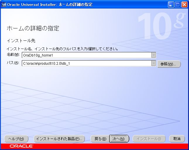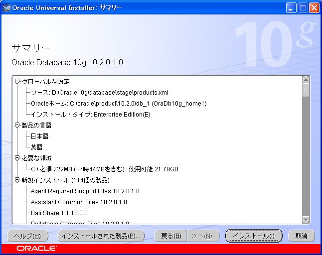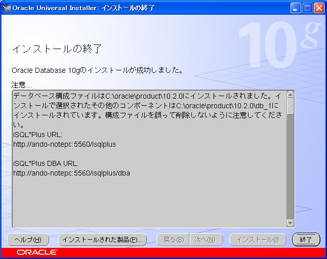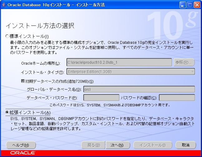 Oracle10g Release 2 for Windows インストール