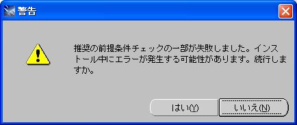 前ページのチェックで「〜要件の検証が必要です。」と出ている場合、この警告画面が表示される。