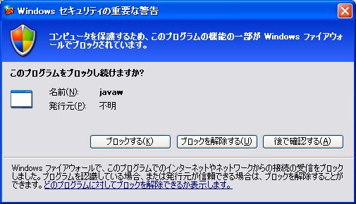 初めてのインストールだと、Windowsファイアウォールの警告画面が出る。