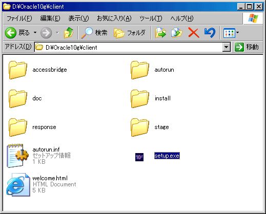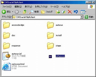 1、OracleDVDの中にある「client」フォルダを開き、setup.exeをダブルクリックする。システムチェックが行われ、Oracle Universal Installerが起動する。 |