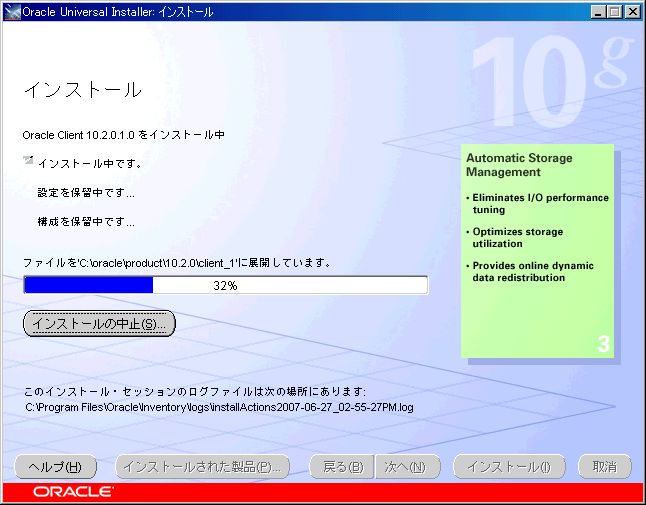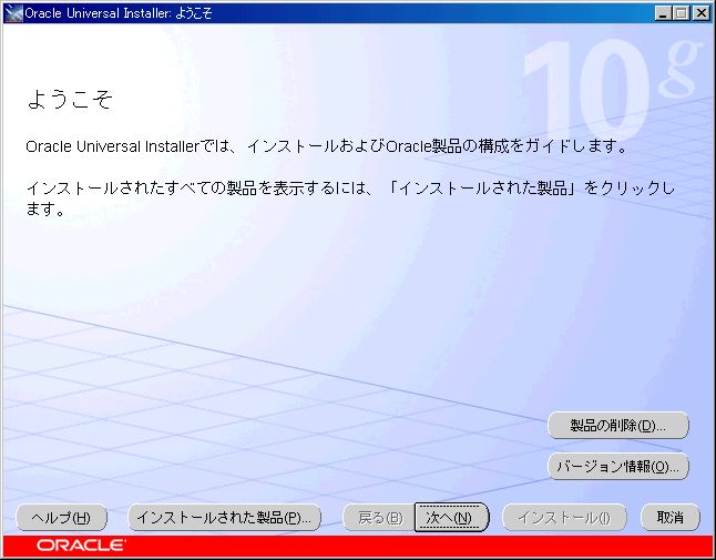 2、Oracle Universal Installerが起動した。