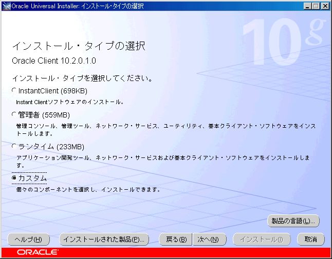 SQL*Plusを使うのに必要なもののみをインストールするなら、以下の2つにチェックを入れ、それ以外をすべて外す。