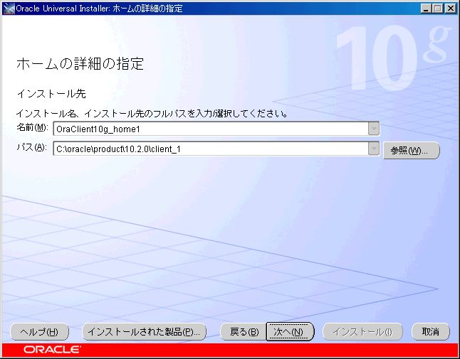SQL*Plusを利用するためのネットワークの設定画面である。「次へ」ボタンをクリック。 |