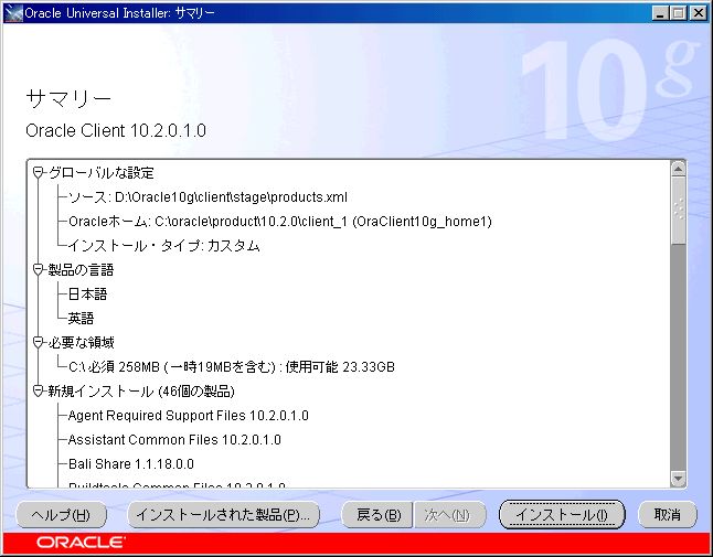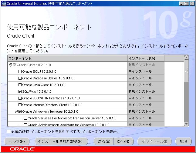 なお、アプリケーション開発を行いたいなら、「Oracle Windows Interfaces 10.2.0.1.0」にチェックを入れ、この下に現れたものから、必要な物のみを選択する。