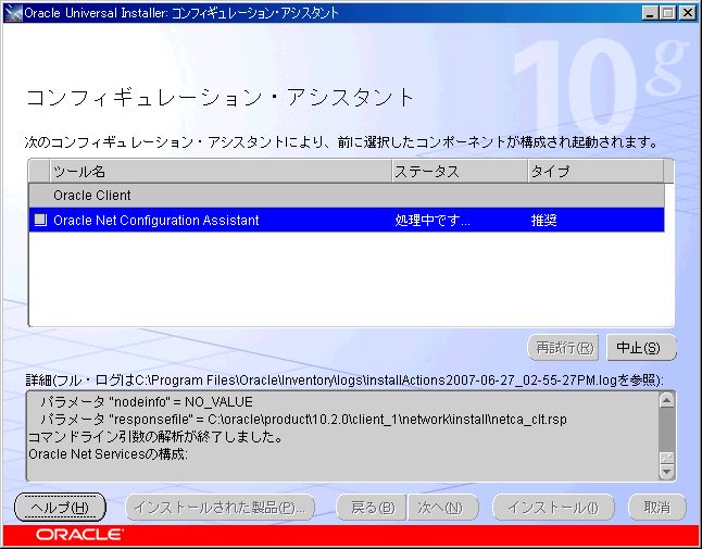 これで、SQL*Plusのインストールが完了した。Oracle Net Configuration Assistantが失敗した場合は、スタートメニューからOracle Net Configuration Assistantを選択し、設定しなおせば良い。