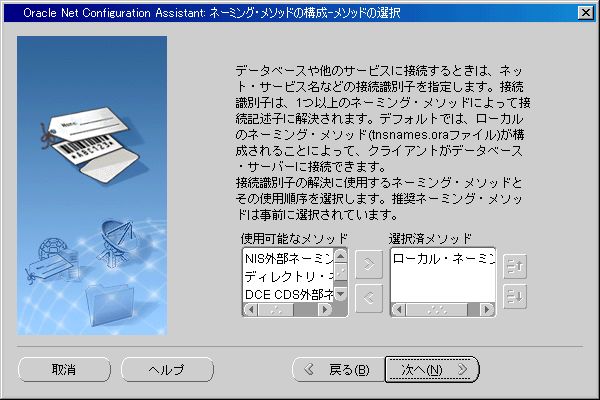 11、Oracle Net Configuration Assistant:ネーミング・メソッドの構成 - メソッドの選択