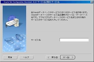 サービス名に接続したいOracleDatabaseのサービス名を入力し、「次へ」ボタンをクリック。 |