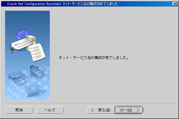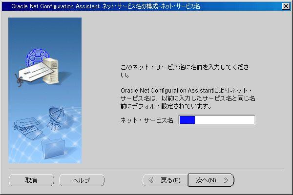 ネット・サービス名が、サービス名として入力したものと同じであることを確認する。この名前をそのまま使ってもよいし、違う名前に修正してもよいが、この名前を使って、OracleDatabaseに接続することになる。
