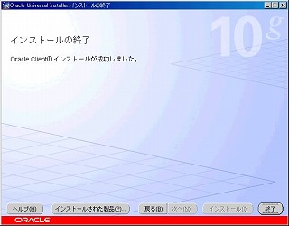 Oracle Net Configuration Assistantの画面が閉じ、Oracle Universal Installerの画面に戻る。「終了」ボタンをクリック。 |