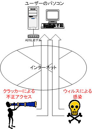 では「常時接続のパソコンは危険」という話をよく聞くが、何故「危険」なのだろうか?図を見てみよう。![]()