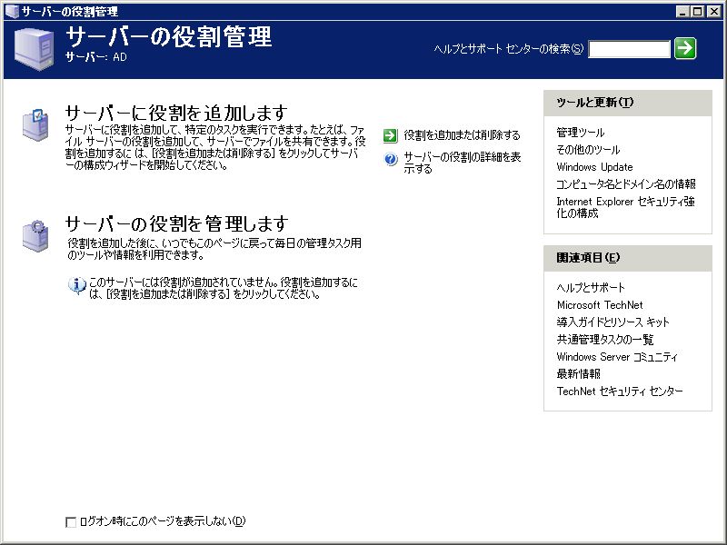| 「サーバーの役割管理」ウィンドウから「役割を追加または削除する」のリンクをクリック |
