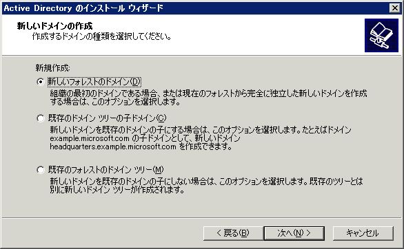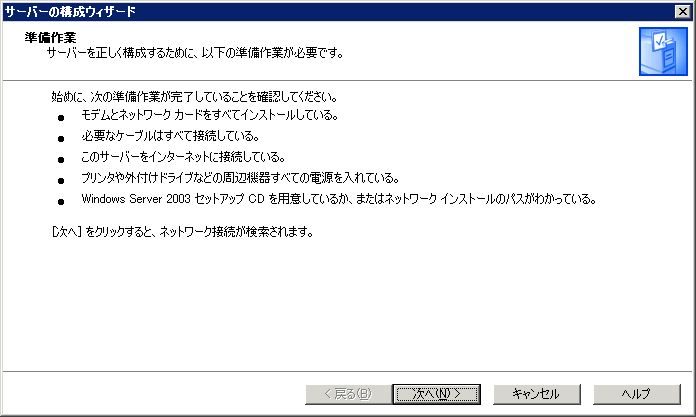 Windows2003Serverをインストールし、ネットワークが使える状態からActiveDirectoryを構築する手順を紹介する。(画像をクリックすると、大きな画像が表示されます)