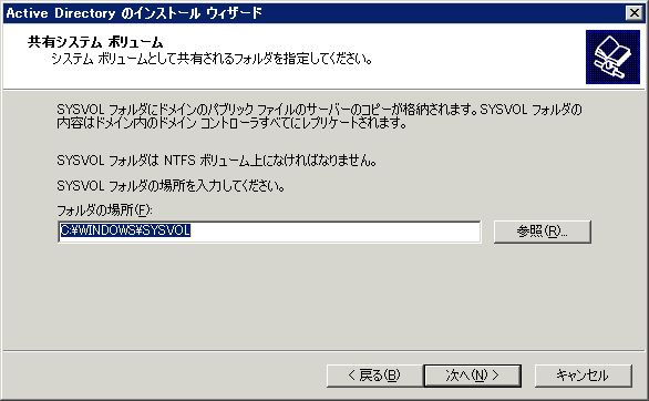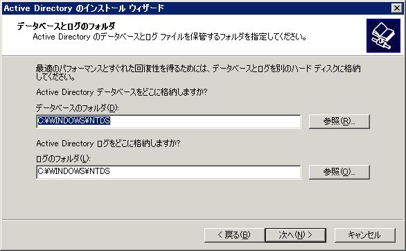 | ディレクトリ情報とログを格納するフォルダを指定する。そのままでよければ、「次へ」ボタンをクリック |