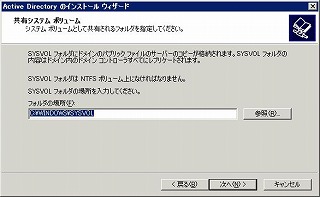 | 共有システムフォルダの場所を指定する。そのままでよければ、「次へ」ボタンをクリック |