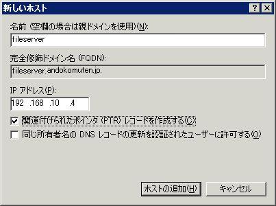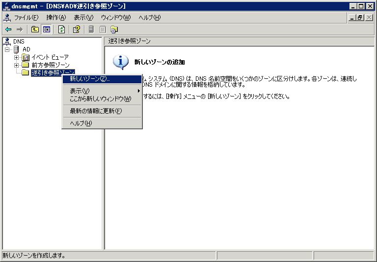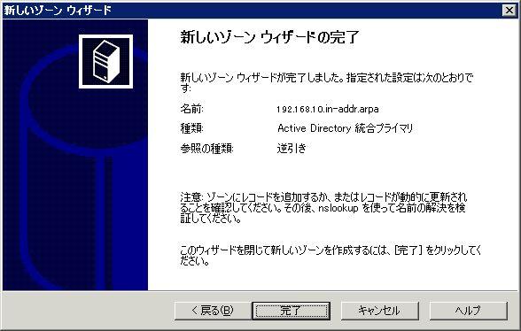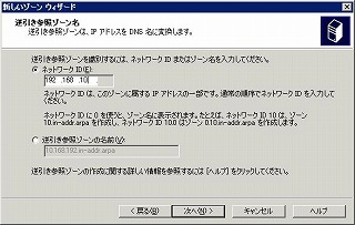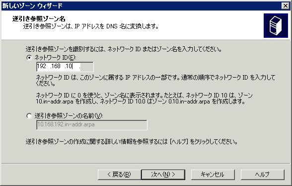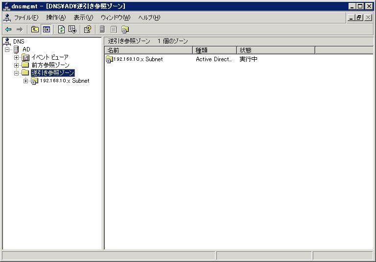 まずは逆引きゾーンを登録する。例として、192.168.10.xxxのゾーンを登録する。
