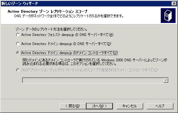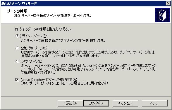 ActiveDirectoryを利用するクライアントが正しく名前解決ができるよう、DNSサーバの設定を行う。
