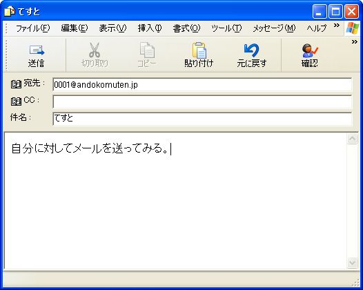 Outlook Expressを使って自分自身にメールを送ってみる。