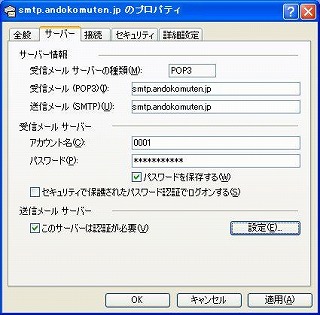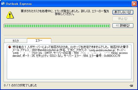 これは、Outlook Expressのアカウントの設定において、SMTP認証を有効にしていないからである。