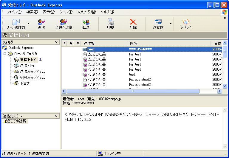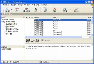 実行後、Outlook Expressでそのメールを受信してみる。SPAMメールの振り分けは無効にしてあるので、受信はできるはず。