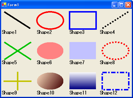 考えてみるとフォームに単に線を引きたい場合や、円が必要な場合などに既存のコントロールでは対応できないのですよね。円を描いてくれるコントロールがあればプロパティの設定だけで簡単にできるので便利です。それがこのShapeです。ネタばらしをしてしまうとVB6のときには、やはりShapeという名前でこのような機能を持ったコントロールがあったのですが、.NETになってからはShapeコントロールがなくなってしまったので、VB6のShapeを.NETに移植しただけです。