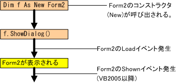 | Form2のNew | Form2のNew | Form2のコンストラクタ実行 |