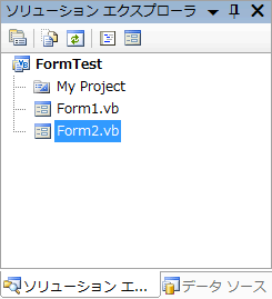 そうすると、次の画像のようにプロジェクトに追加されたForm2.vbがソリューションエクスプローラに表示されます。