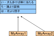 プログラムではMyArray2の方だけに「ろ - 論語読みの論語知らず」をセットしているので、MyArray1の内容まで変ってしまっているのは妙な気がしますが、実はこれで正常なのです。