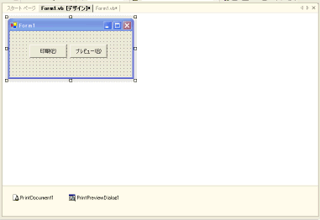 ■画像1:フォームに配置したところ。PrintDocumentとPrintPreviewDialogは下にあるコンポーネントトレイに配置される。