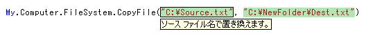 'Nameで指定されたファイルをバックアップフォルダにコピーする。 Private Sub Backup(ByVal Name As String) Dim BodyName As String BodyName = IO.Path.GetFileName(Name) End Sub |