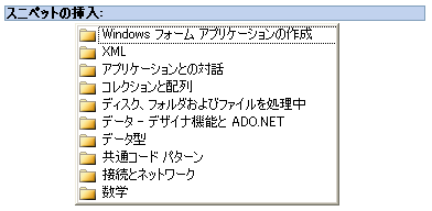 コードスニペットの管理のためにコードスニペットマネージャというツールも用意されています。このツールはVBの[ツール]メニューから起動できますが、あまりたいした機能はありません。