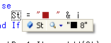 このウィンドウはプログラムに含まれている変数の状態を示しています。私が実行を停止したときには i = 0、 St = "□0"という状態だったことがこのローカルウィンドウから読み取れます。面白いのはここからです。このウィンドウを表示したままステップ実行をしていくと変数の内容がリアルタイムに変化していきます。