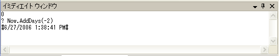 これもちゃんと表示されます。一昨日の日付が突然知りたくなることなどまずないのですが、要するにVBで使用できる命令がそのままイミディエイトウィンドウでも使用できることを説明したかったのです。