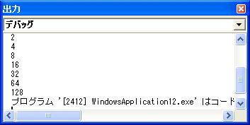途中に出てくるDebug.WriteLineは出力ウィンドウにに値を書き出す命令ですから、結果を確認するには 出力ウィンドウを見てみてください。出力ウィンドウを表示するにはVBの[表示]メニューから[その他のウィンドウ] - [出力]をクリックします。