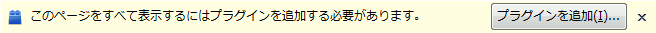 Adobe Flash Playerなど、Flash を使用しているページを開くと、下の画像のように「このページをすべて表示するはプラグインを追加する必要があるます」とブラウザ上部に表示される。