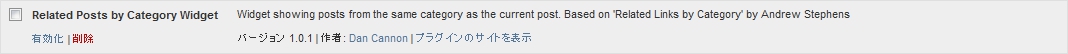 管理パネルで、「プラグイン」をクリックし、プラグイン設定画面を開く。「 Related Posts by Category Widget 」を探し有効化。