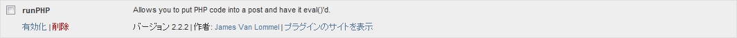 管理パネルで、「プラグイン」をクリックし、プラグイン設定画面を開く。「 runphp 」を探し有効化。
