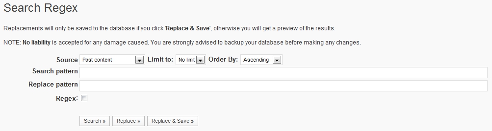 2010年10月01日現在のバージョン:Search Regex.1.4.11