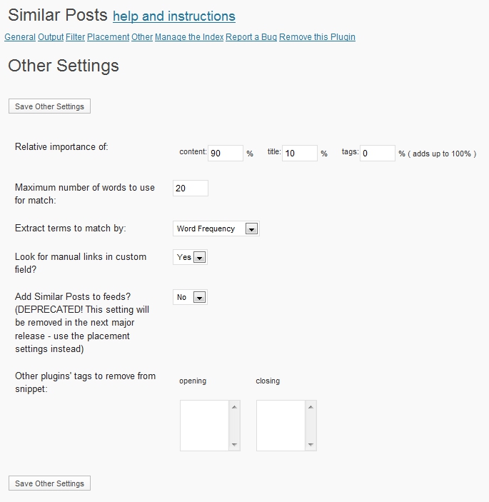 - Other plugins’ tags to remove from snippet