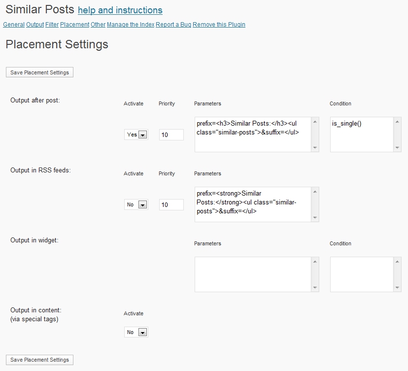 Placement Settings