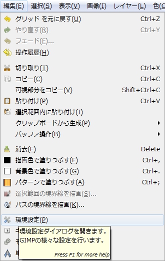 ≫ GIMP – 編集 > 環境設定