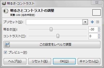 ≫ GIMP – 明るさ・コントラスト – 明るさ:-30 – コントラスト:0