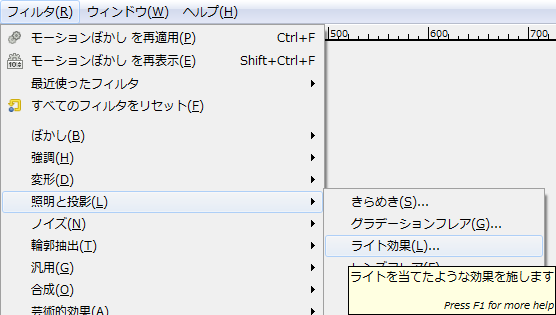 GIMP > フィルタ > 照明と投影 > ライト効果