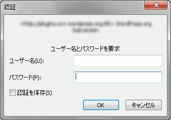 ユーザー名とパスワードを要求されるので、入力し、「OK」をクリック。