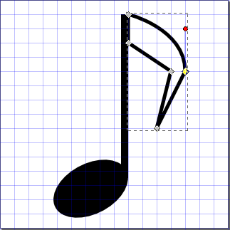 「全オブジェクトまたは全ノードを選択」ボタンをクリックし、「4分音符」のオブジェクトと「符尾(はた)」のオブジェクトを選択する。