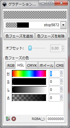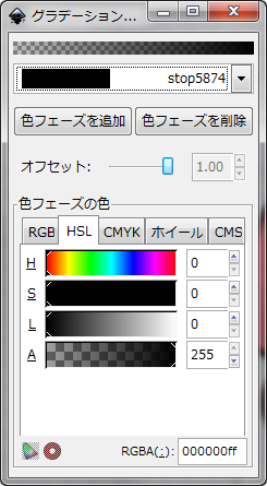 四角いグラデーションハンドルをダブルクリックし、「グラデーションエディタ」を開く。