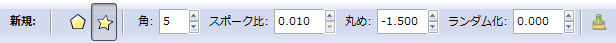 角を「5」に、スポーク比を「0.010」に、丸めを「-1.500」に設定。