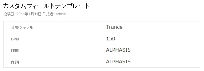 音楽用カスタムフィールドテンプレート 窶・表示 窶・[cftsearch format=0]