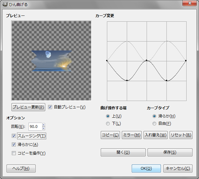 ひん曲げる | 画像を自由自在に曲げる変形フィルタ | GIMP